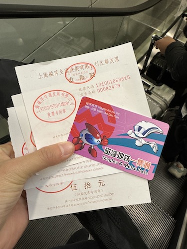 결국 고생하며 돌아다닌 끝에 손에 넣게된 maglev 왕복 티켓과 메트로 원데이 패스. 이 한 장을 샀을 뿐인데 영수증을 네 장이나. 티켓은 반납할 필요 없이 souvenir로 가져가라는 말이 왜이리 웃기던지. 그냥 일회용이란 말인데, 중국식 생색이란.
