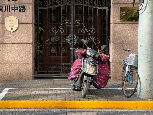 상해는 대체로 따뜻했다. 외투를 벗고 반팔에 셔츠 하나만 걸치고 다녔는데도 땀이 나기도. 그래도 상해 사람들은 겨울이라 추운지, 오토바이에 방한 이불을. 저 멀리서 단체 오토바이가 달려오는데 모두가 방한 이불을 끼고 있는 모습은 좀 웃기기도 했다.