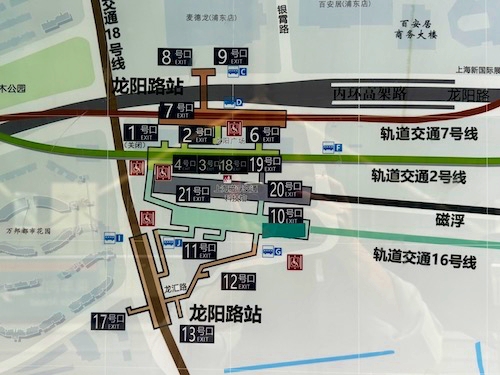 마그레브를 탈 수 있는 롱양루역에 도착했다. 18호선의 지하철과 그만큼의 exit이 있는 도시에서 용케 잘 살아남았다는 생각을 했다.