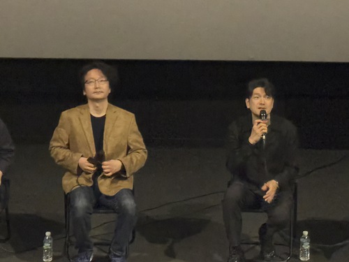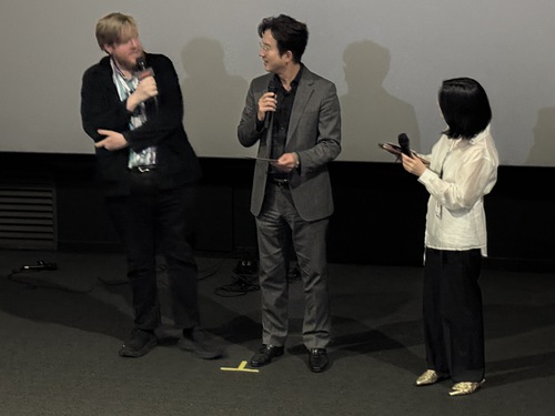 <검은 소> 상영 후 츠타 데츠이치로 감독과 구보데라 고이치 작가.