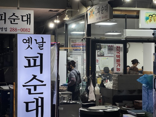 순대국밥에 피순대 한 접시, 그리고 막걸리 한 병.