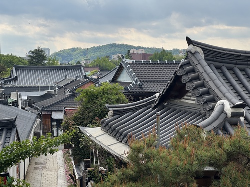 숙소와 주차장이 한옥마을 모퉁이에 있어 지나치게된 한옥마을.