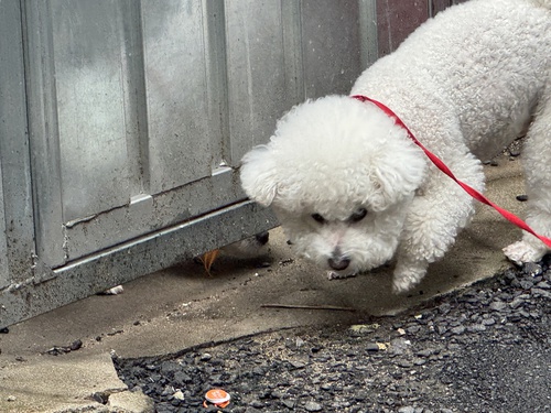 갑자기 흥분하는 흰둥이를 구경하다보니 철문 아래 낯익은 검정콩이.