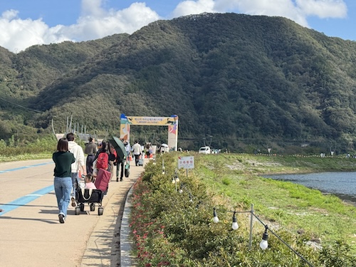 공연장이 있는 섬으로 걸어 들어가는길. 언제나 그랬든 영화 <소울>처럼, 모두가 한 줄로 줄지어 걸어 들어간다.