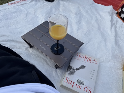 밤에 운전을 해야하니 술대신 오렌지 주스로 기분을 냈다. 오늘은 반드시 사피엔스를 끝까지 읽으리라 다짐하며.