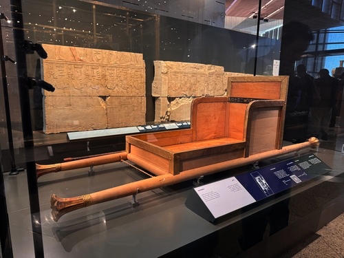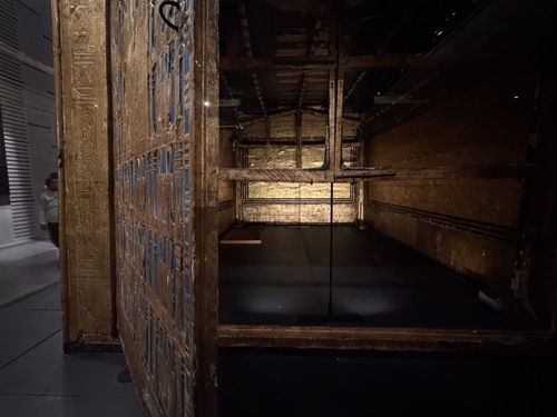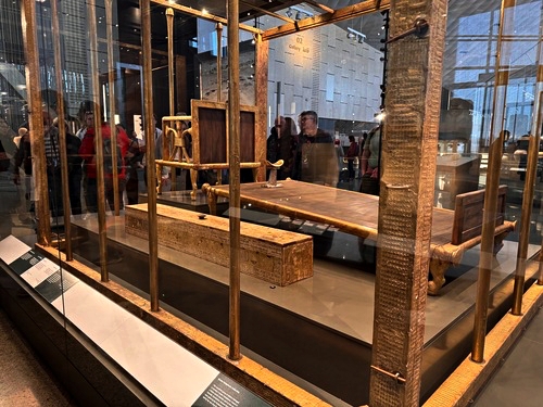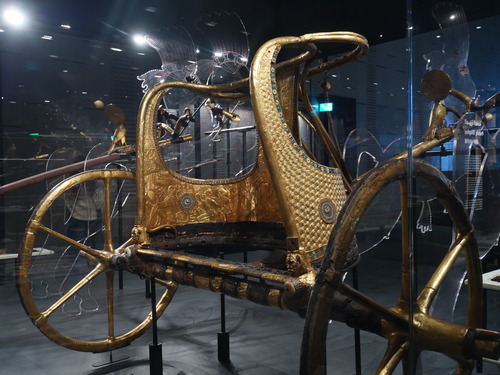 전시실에서 복도를 건너 넘어가면 투탕카멘 관이 굉장히 길고 크게 구성되어 있었다. 이집트 중왕국을 구경하다 투탕카멘 관으로 넘어갔다. 도굴되지 않은 채 발견되었던 만큼, 부장품이 굉장히 많고 다양했다. 일단 황금 전차를 보며 시작.