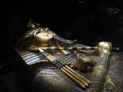 함께 묻힌 수많은 지팡이. 투탕카멘이 생전에 다리에 장애가 있었을 것이라 추정되기에, 많은 양의 지팡이가 묻힌 것이 아니겠냐는 글을 본 것 같다.