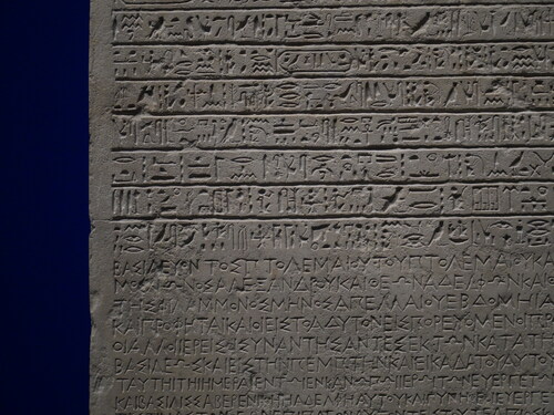 히에로글리프, 민중문자, 그리스어 세 가지 언어로 기록된 카노푸스 칙령.