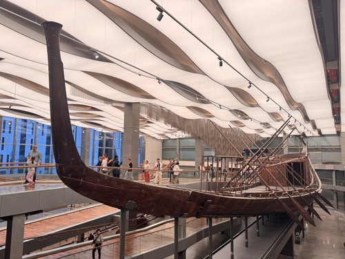 선체의 Hull을 이루는 나무가 이어붙인 것이 아니라 선수에서 선미까지 하나의 통나무인 것이 무척 놀라웠다. 좋은 나무가 귀했다는 이집트에서, 이 나무를 위해 먼 원정으로 수급했을지 어땠을는지 , 그런 여러가지 건조의 과정을 상상했다.