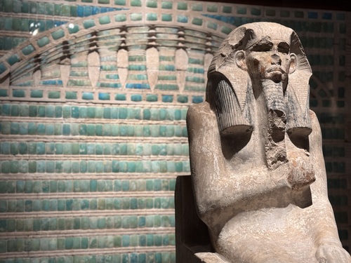 드디어 만나게된 조세르 왕의 석상. 실제 사이즈의 이집트 조각상 중 가장 오래된 것이라 한다. 실제로 계단 피라미드에 함께 있던 푸른 석벽까지 함께 전시되어 있었다.