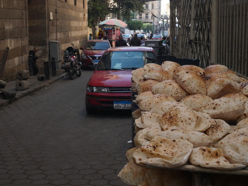 거리에서 쉽게 마주치는 이집트 빵 에이쉬.