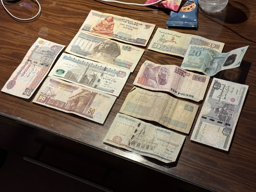 이집트는 물가가 굉장히 저렴했다. 이집트 파운드가 공식 통화였고, 30쯤을 곱하면 대략 원화와 맞았다. 제일 큰 지폐는 200, 작은 지폐는 5. 그보다 작은 금액은 동전으로. 동전을 많이 사용하는 것 같은데, 지하철에서도 관광객에겐 절대 거슬러 주지 않는 동전.