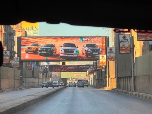 도로에서. 거대하게 세워져 있는 광고판이 인상적이었다. 차선이 없어 사람들이 마구 달리게 되었는지, 마구 달리니 차선을 없앤 건지 선후 관계가 궁금했다.