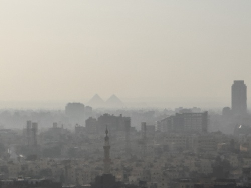 성채에 앉아서 숨을 돌렸다. 저 멀리 기자의 피라미드가 보였다.