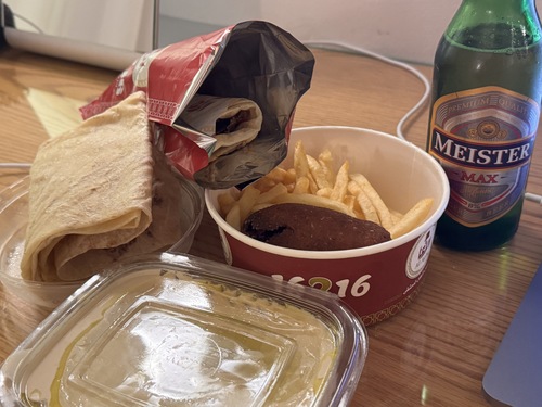 너무 많이 걸어 지쳐버린 날엔 탈밧(talbat)으로 음식을 배달시켜 호텔에서. 이집트식 케밥인 샤와르마도 괜찮았지만, 후무스가 너무 맛있었다.