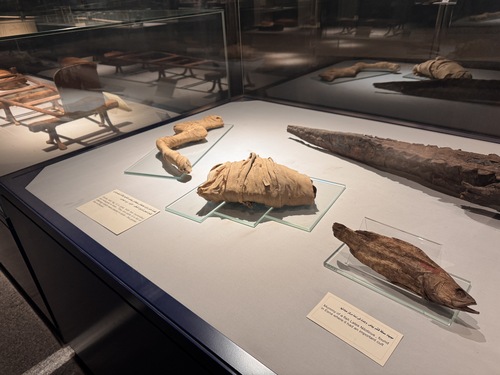 물고기를 비롯한 여러 동물의 미라.