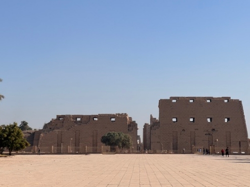 탑문을 들어서면 저 멀리 람세스 2세의 석상이 보인다.
