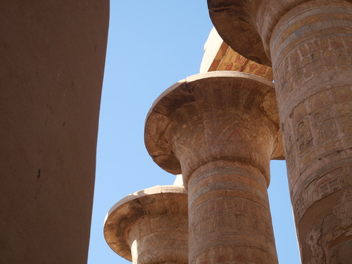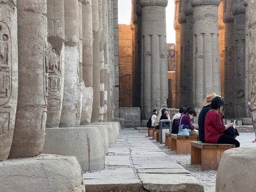 룩소르 신전 한 켠에 앉아 신전의 기둥 사이로 스며드는 석양을 즐겼다.