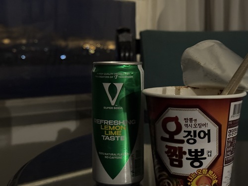 어느 날은 도저히 식당을 찾아 나설 힘이 없어 오징어 짬뽕에 이집트 사이다로 때우기도 했다. 나일강 건너 불 켜진 서안의 야경을 보며 먹는 오짬이란.