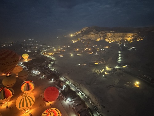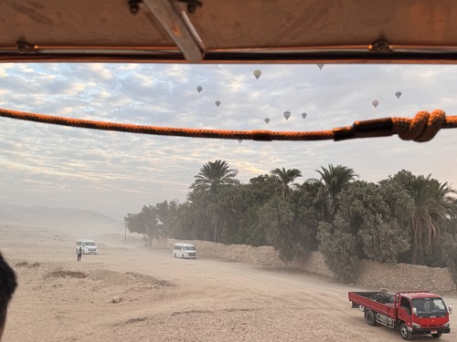 이따금씩 섬처럼 위치한 건물들이 무엇인지 궁금했는데, 열기구 캡틴이 설명해 주시길 고고학 연구를 위해 파견된 여러 나라 대학들의 기숙사 겸 기지라 한다. 저긴 프랑스 어느 대학의 기숙사라고 했던 것 같다. 진짜 현장에 머무르며 손에 잡히는 연구를 하는 사람들의 기분이 어떨지, 상상만 해도 내가 다 설렜다.